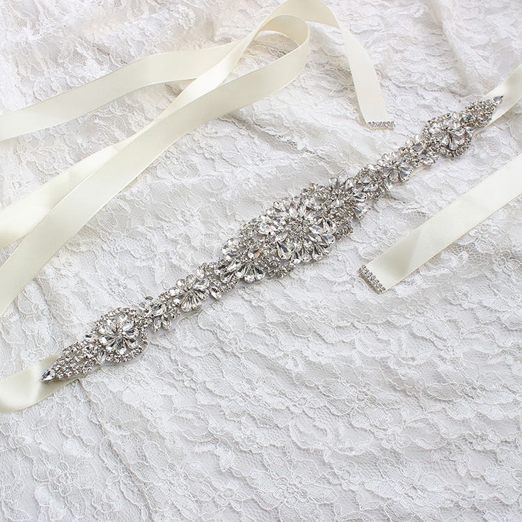 #06608278 Bridal Ribbon Sash with Rhinestones applique