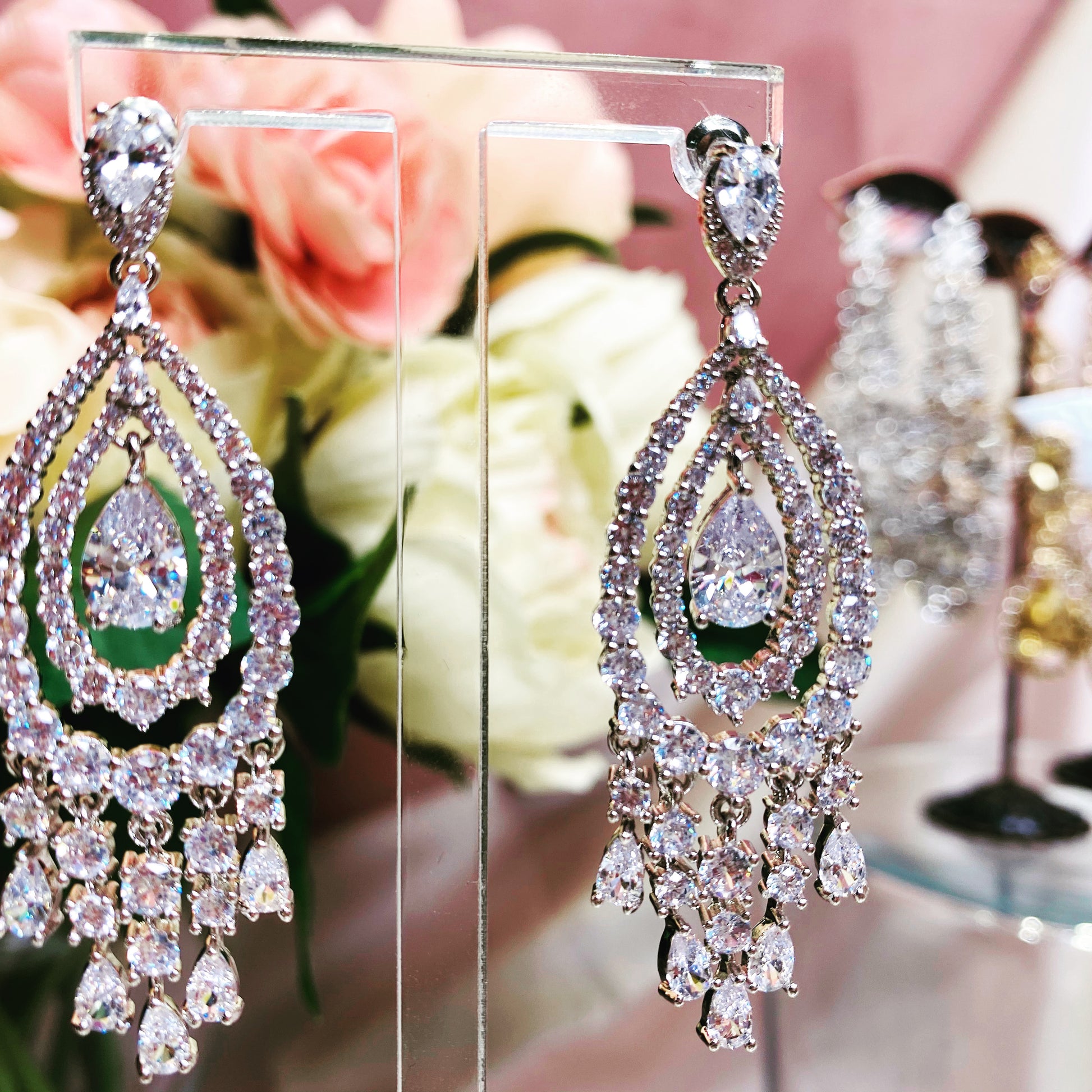 #10532013 Cubic Zirconia Earrings 4.5*1.7cm