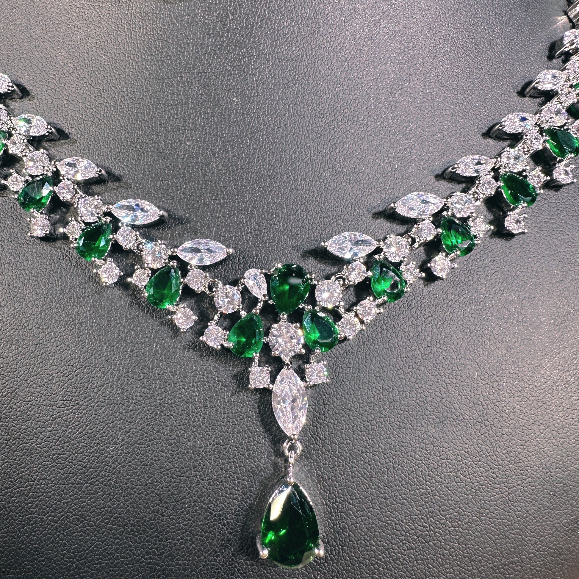 #18522020 Cubic Zirconia Jewelry Set (Green,Blue,Silver)