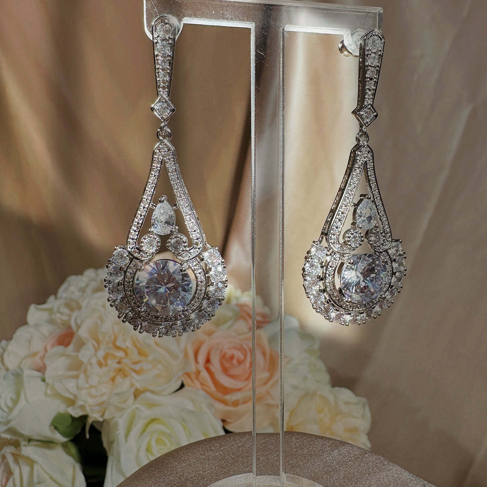 These glamourous and sophisticated cubic zirconia earrings are perfect for any fashion-conscious individual. Their stunning design and high-quality materials will add a touch of elegance to any outfit—a must-have for any special occasion.