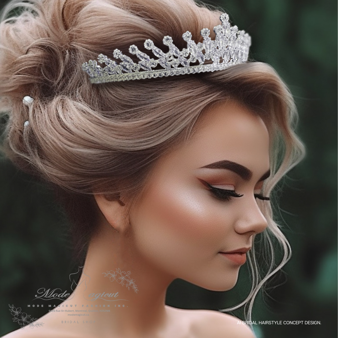 Elevate your bridal look with our exquisite cubic zirconia tiara. Crafted with meticulous attention to detail, this delicate headpiece features sparkling cubic zirconia stones set in a stunning silver-tone design. Perfect for weddings and special occasions, this tiara will add a touch of elegance and glamour to your hairstyle. Make a statement as you walk down the aisle with this timeless accessory that radiates beauty and sophistication.