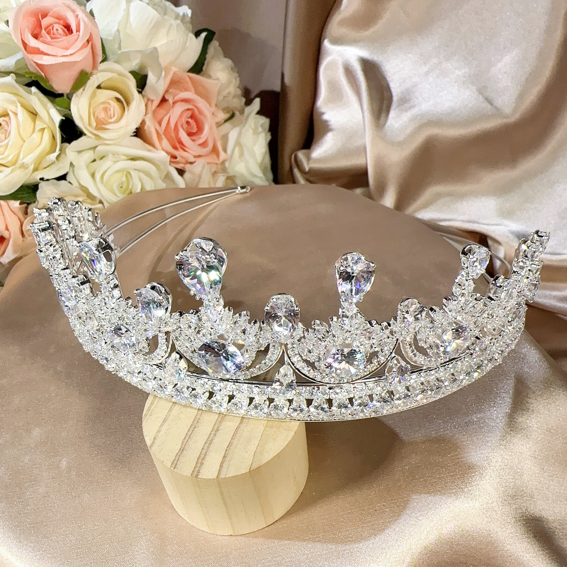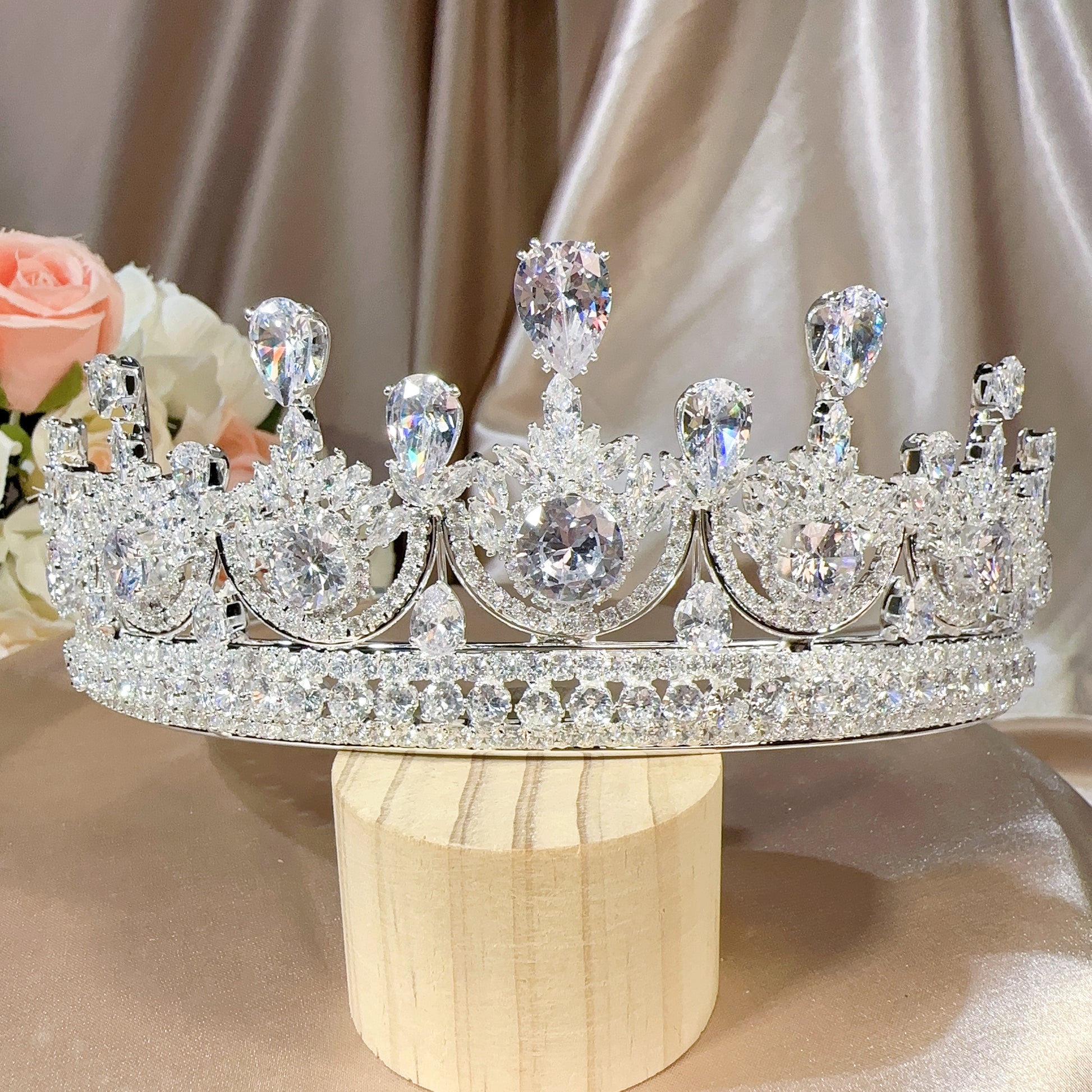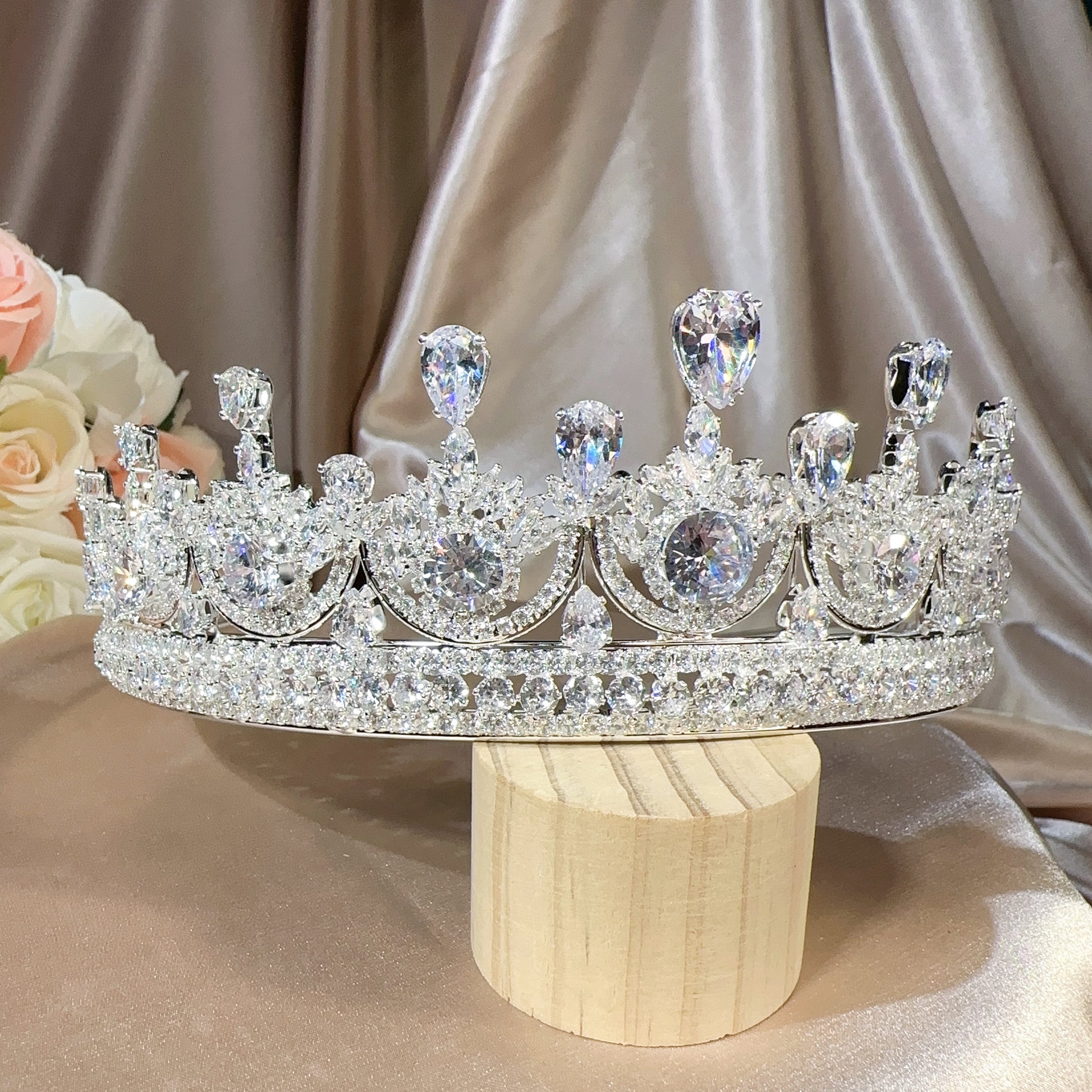 23998900 Breathtaking Luxury Bridal Crown in Silver Color with Cubic Zirconia for a Perfect Wedding
