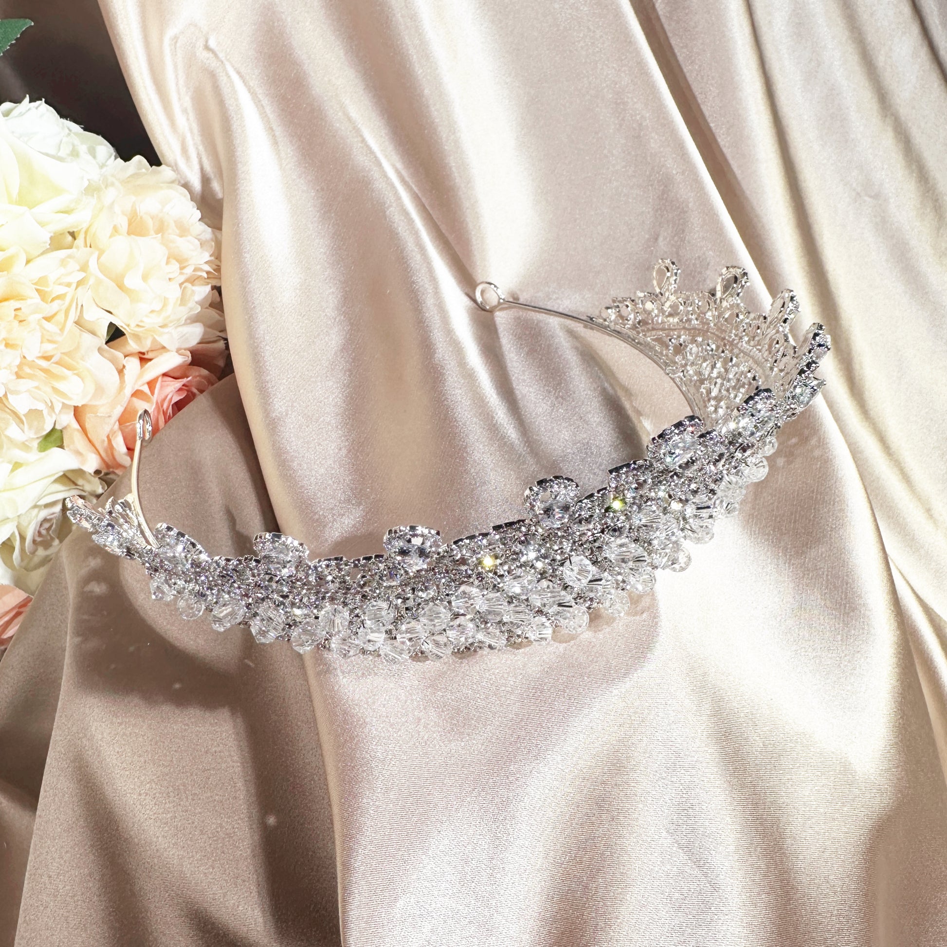 Make a statement on your wedding day with our stunning bridal tiara. Adorned with beautiful cubic zirconia stones, this tiara will add a touch of glamour and sophistication to your bridal look. Expertly crafted with high-quality materials, it is the perfect accessory to elevate your bridal style and create an unforgettable impression.