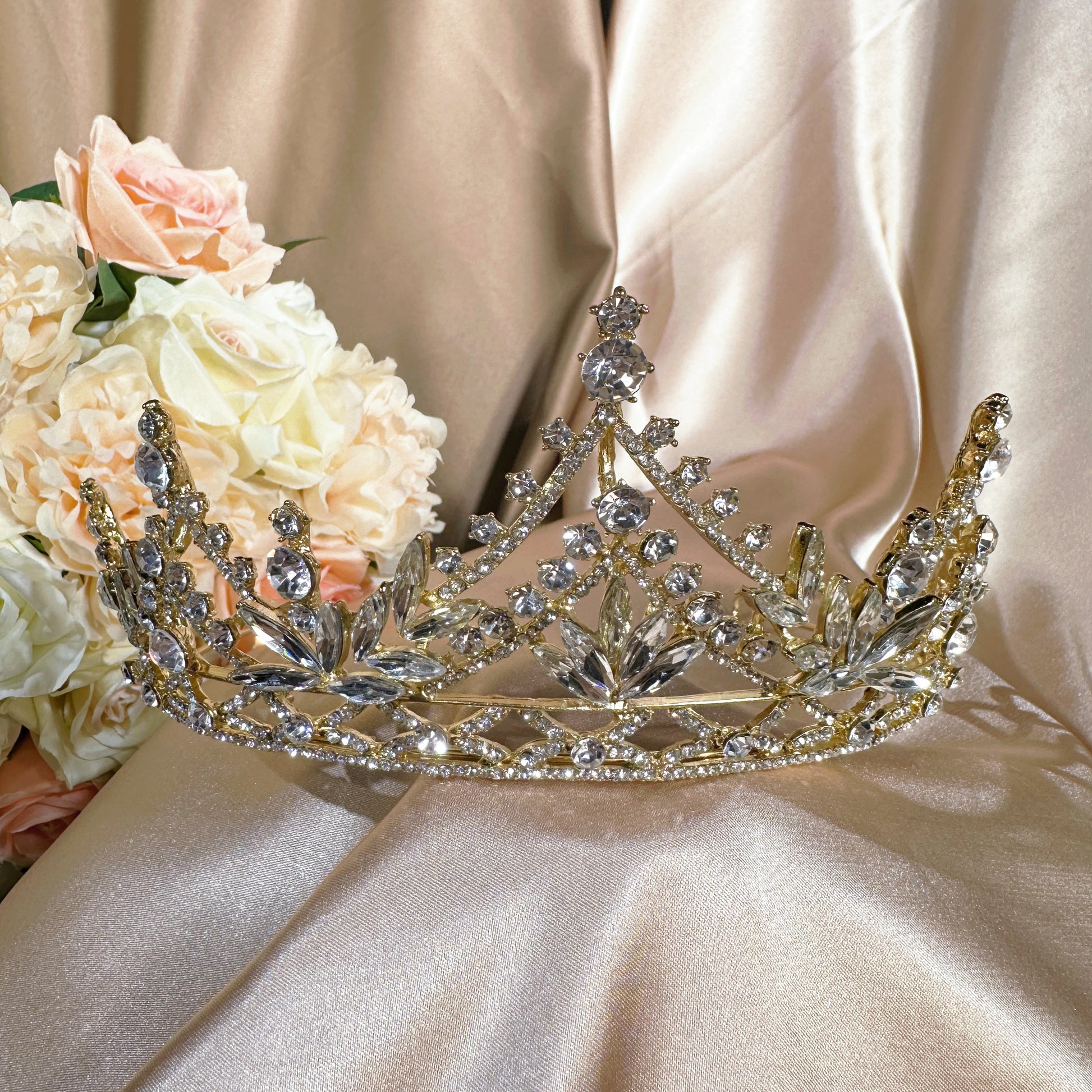 23292866 Elegant Gold Rhinestone Tiara for a Romantic Look | Bridal Hairstyle | Bridal Accessories | For Wedding