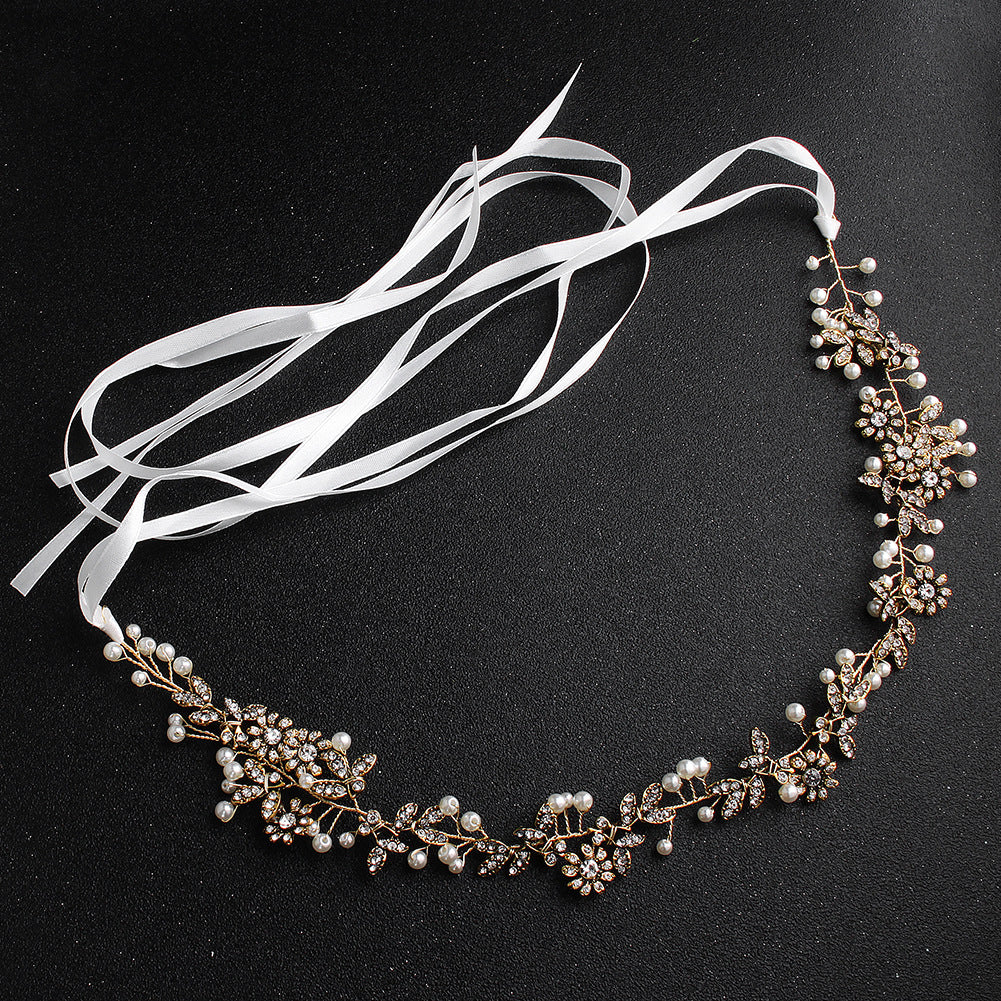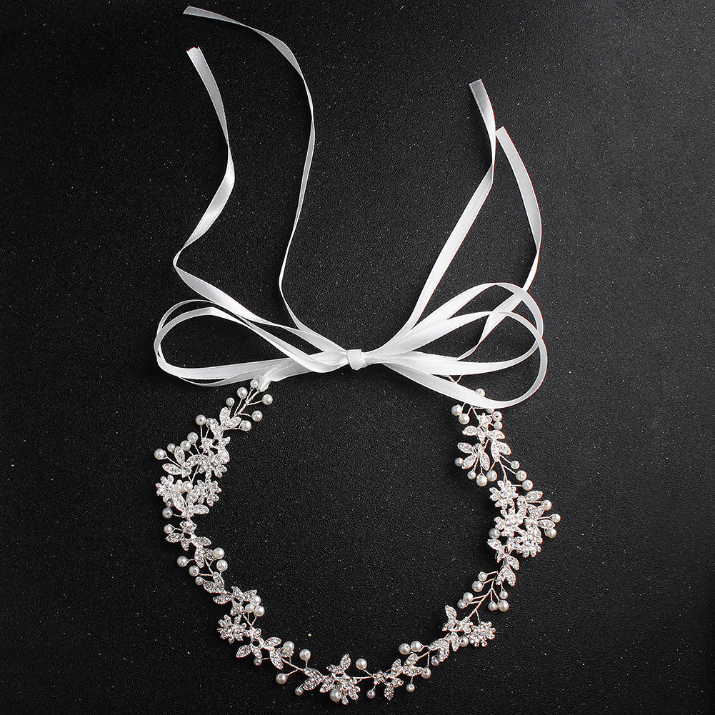 #06418077 Floral Crystal Headbands with Imitation Pearls